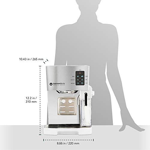 ? Includes: 19 Bar Pump Espresso, Cappuccino & Latte Maker, Electric Coffee Bean Grinder, Stainless Steel Portafilter with Single and Double Shot Filter Baskets, Milk Reservoir, Scoop/Tamper, 2 Double Walled Espresso Glasses, 2 Double Walled Cappuccino Glasses & 16 Cappuccino Art Stencil Templates ? ESPRESSO MAKER ALL IN ONE SET - Easy to use 19 Bar Pump Machine with everything needs to become a true Barista ? LATTE MACHINE WITH MILK FROTHER - Built-in Removable Frother allows you to heat and froth milk to create cappuccinos and lattes. ? LARGE WATER TANK - 1.4L large detachable water tank with convenient handle to allow for hassle-free refills and easy cleaning! ? SINGLE ESPRESSO SHOT or DOUBLE ESPRESSO SHOT- Two stainless steel portafilter baskets included for the option of pulling a single shot or a double shot during each extraction.
